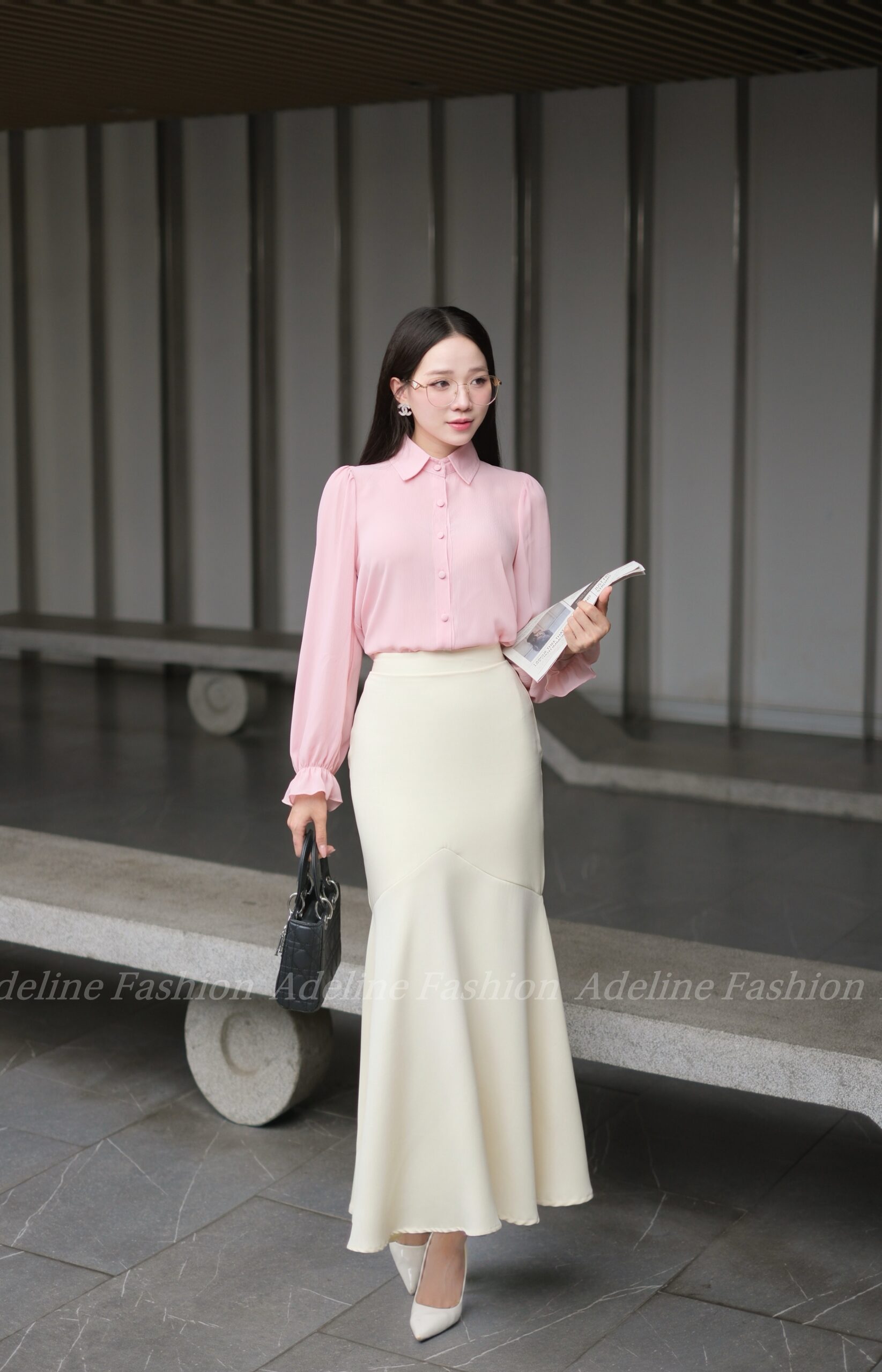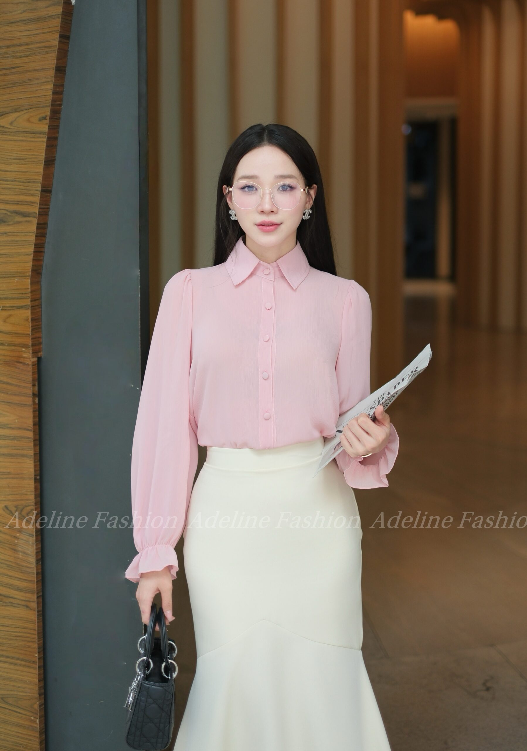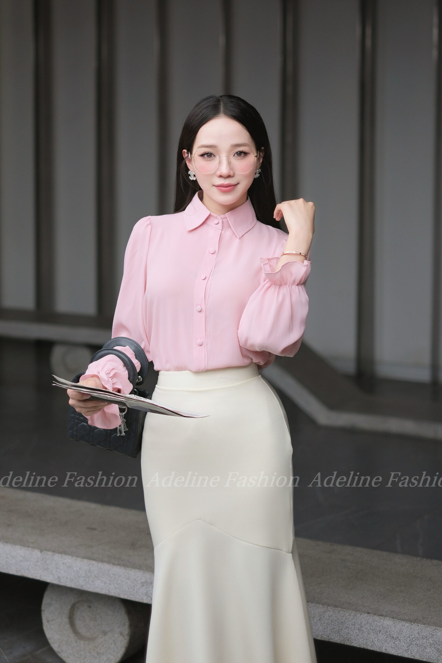 Adeline House – Set đồ công sở thanh lịch, duyên dáng: Áo sơ mi hồng nhạt